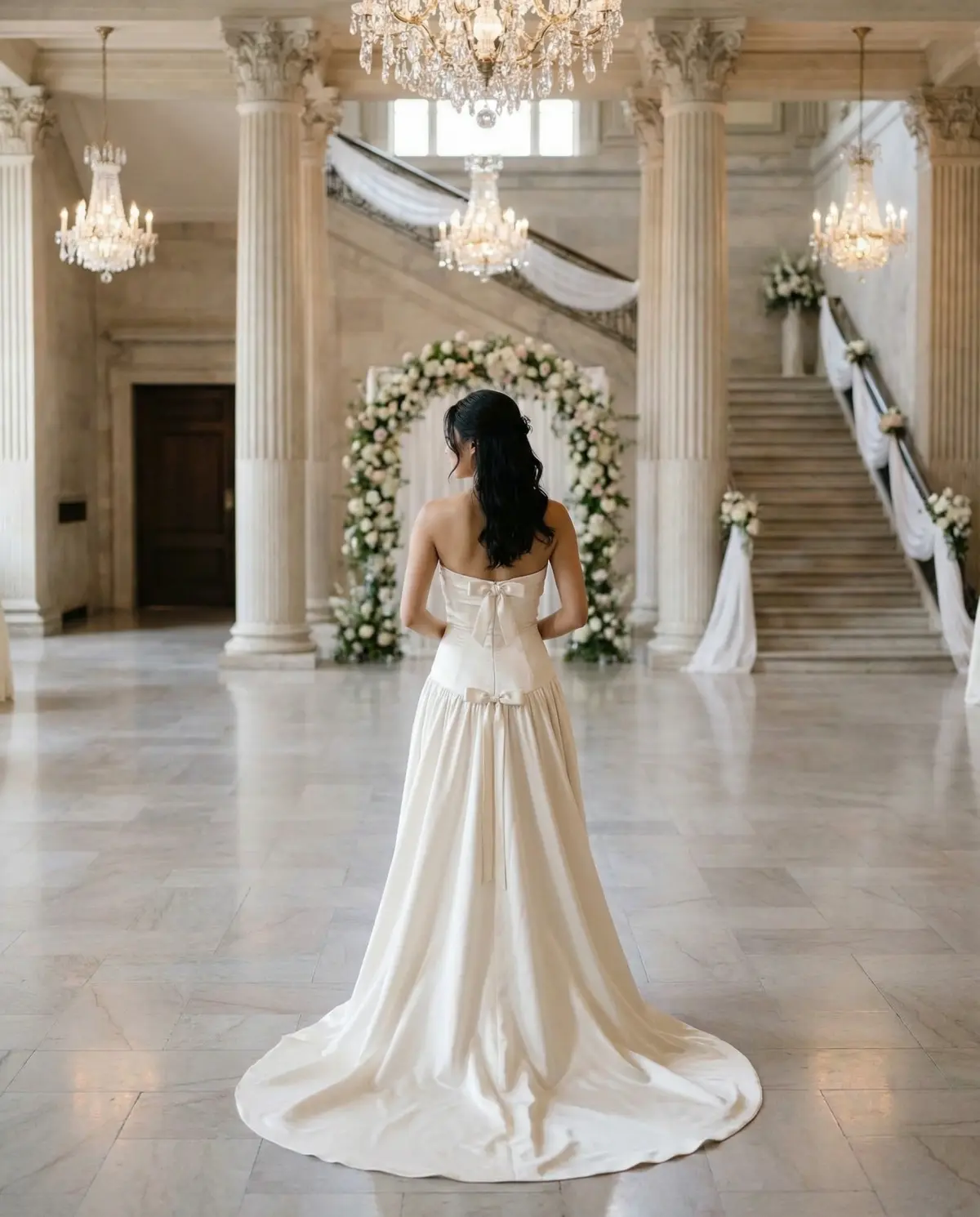 - Traditional basque ball gown: Princess-style, structured bodice with full skirt.