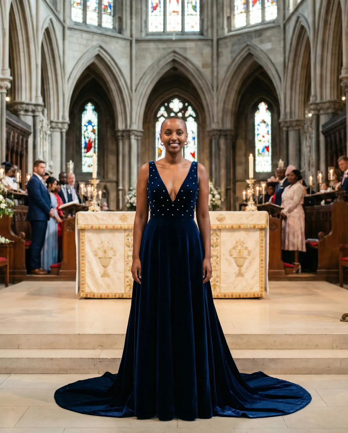 - Navy minimalist gown: Understated but striking, especially with simple styling.