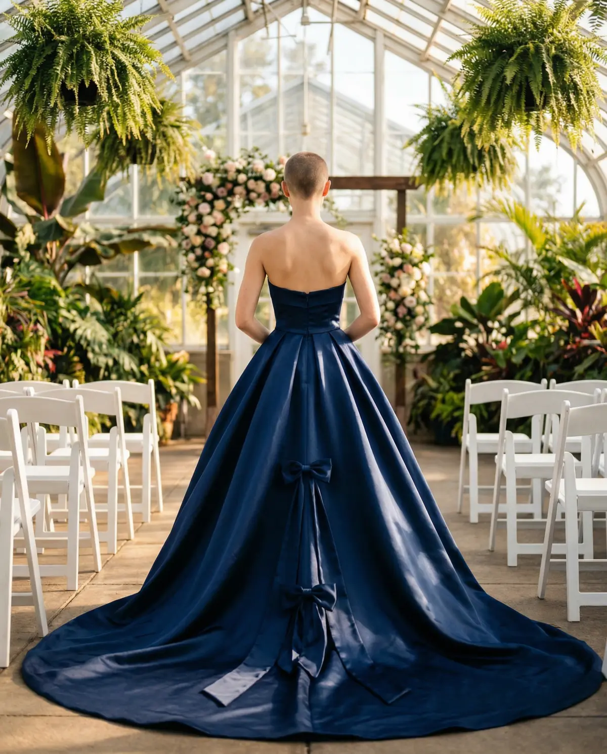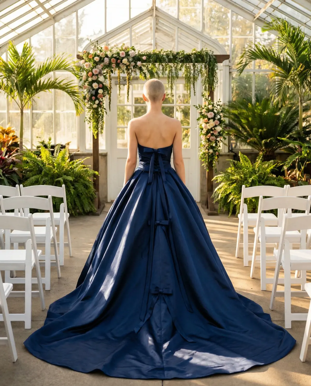 For fall and winter weddings, richer blues like royal, cobalt, and navy bring depth and sophistication. Navy in particular looks stunning against autumn foliage and works perfectly in candlelit winter venues where the fabric catches warm light. If you're having a holiday-season wedding, a midnight blue gown with subtle sparkle creates an effortlessly glamorous effect. Regardless of season, avoid choosing a blue that's too close to your bridesmaids' dresses β you want to stand out as the bride, even in a non-traditional color.