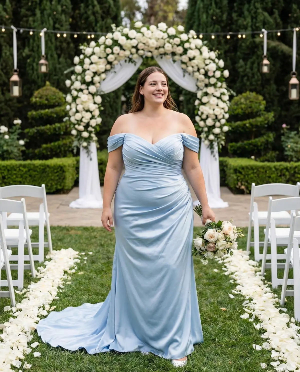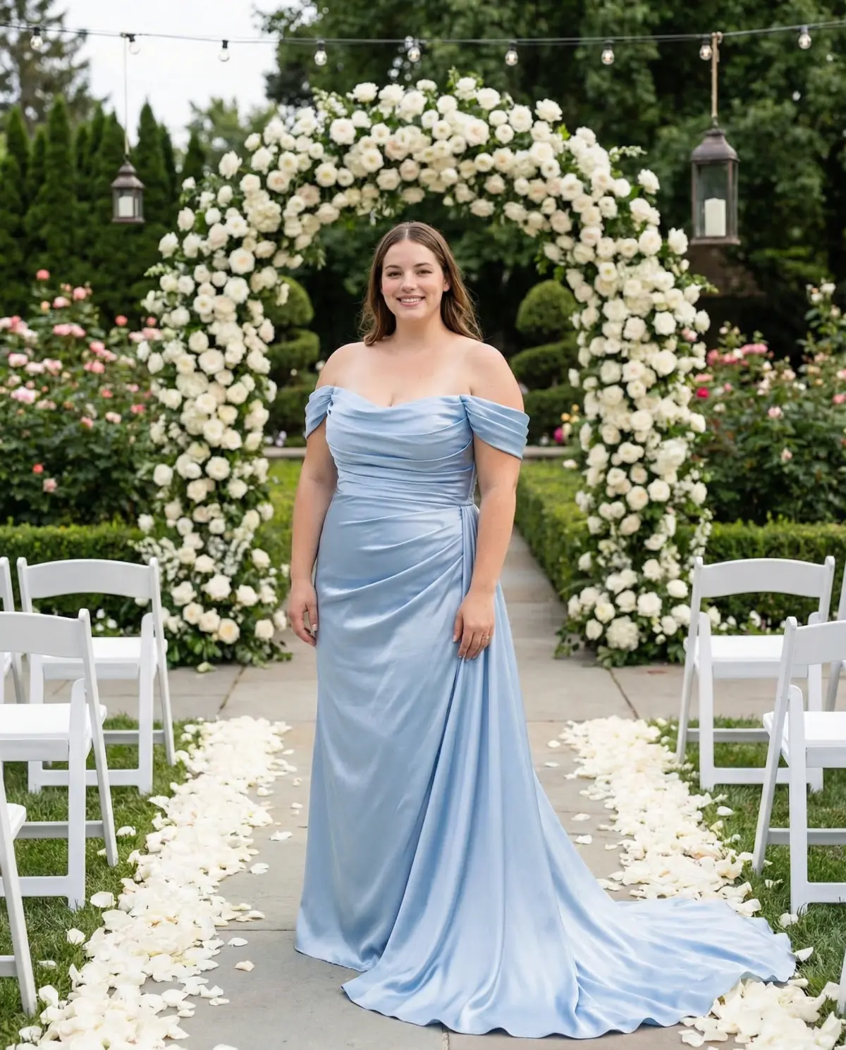 - Royal blue satin: Bold and modern, best for evening or city weddings.