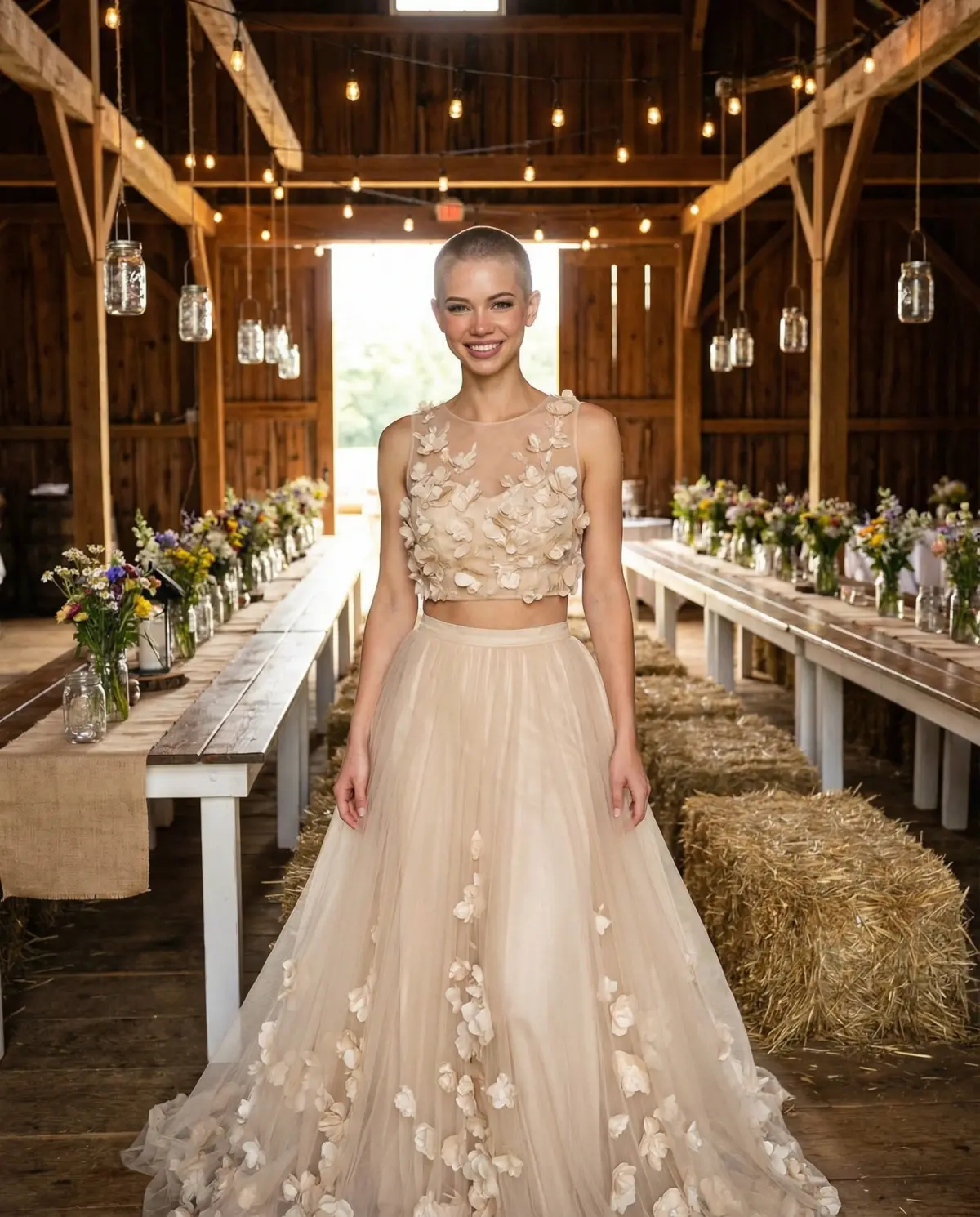 The two-piece set. A crop top and skirt combination is unexpected, comfortable, and surprisingly versatile. A lace crop top with a flowing chiffon skirt feels boho. A structured bustier with a satin midi skirt feels modern. Mix and match to get exactly the vibe you want.