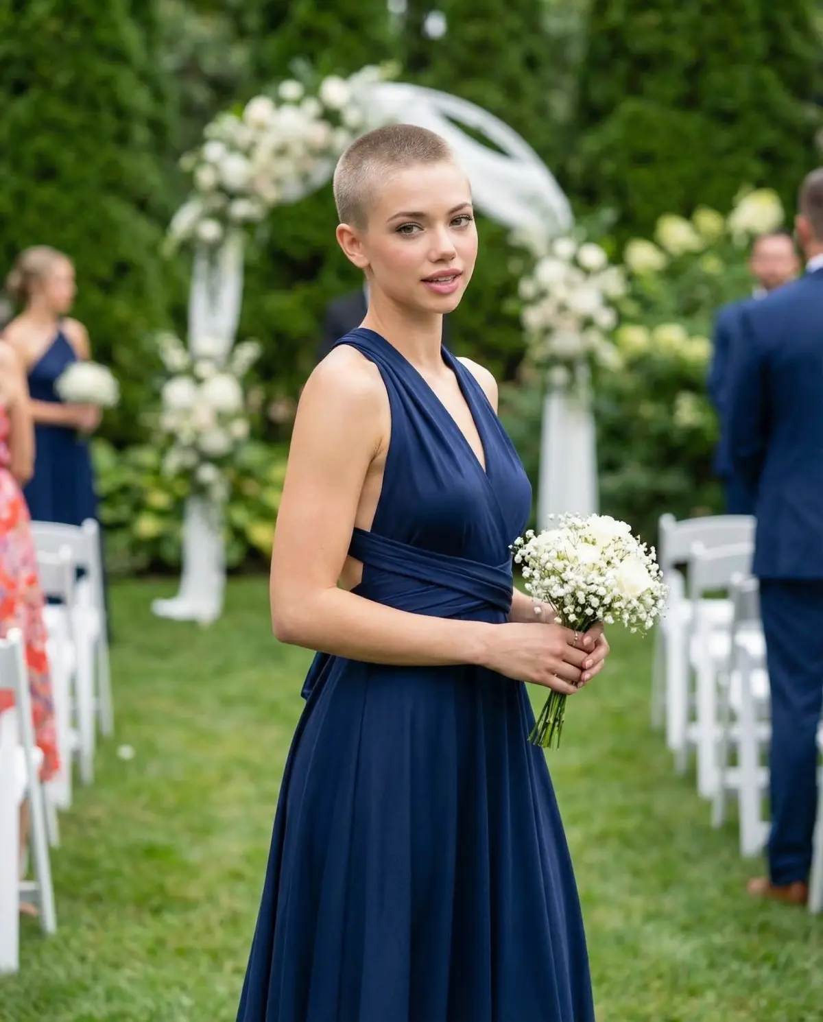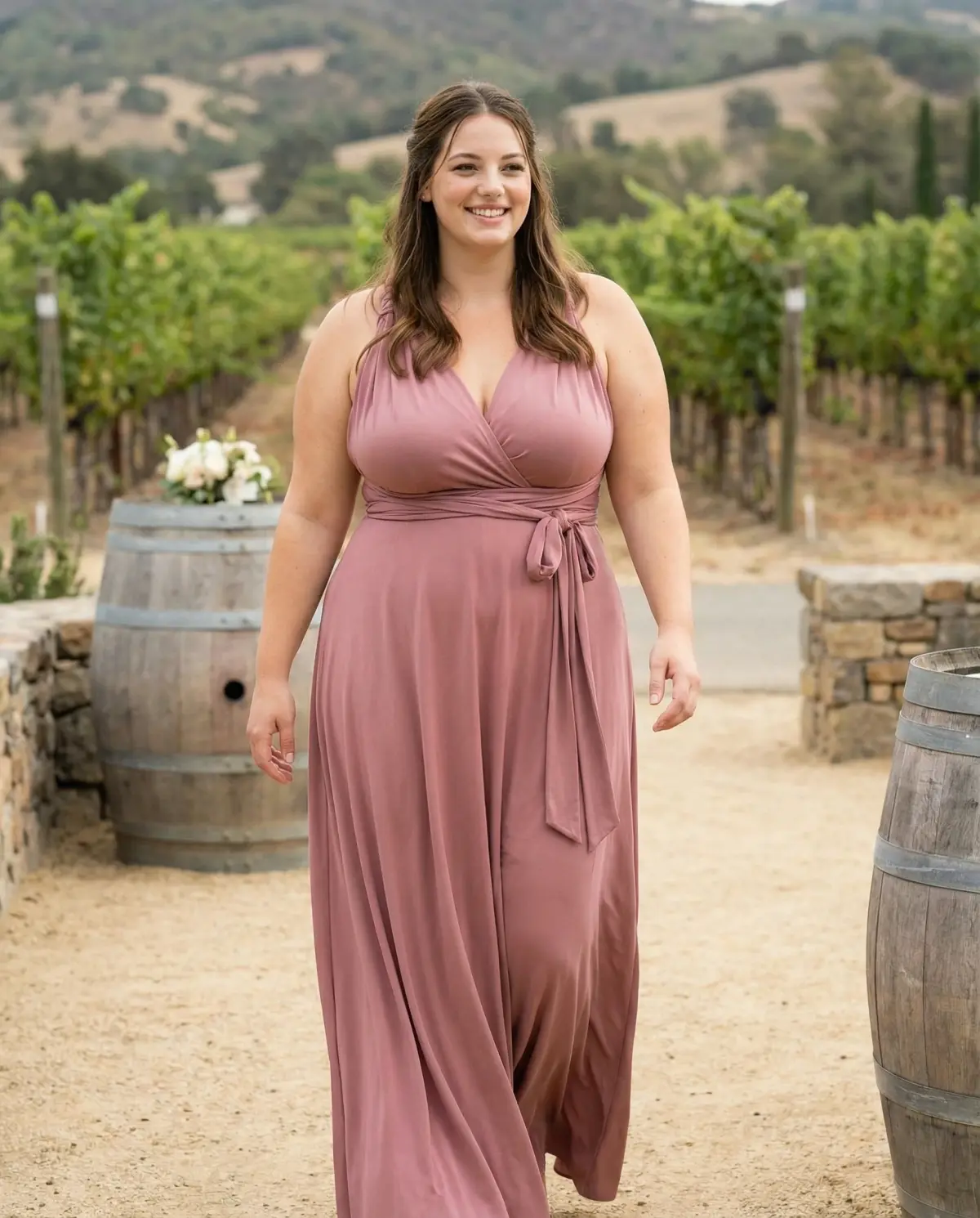One of the biggest advantages of convertible bridesmaid dresses is that each person can adjust the wrap to flatter her specific shape. Bridesmaids with broader shoulders often prefer a one-shoulder or halter configuration that balances proportions. Those with a fuller bust tend to feel most supported in a cross-front wrap that provides structure without a strapless neckline. Pear-shaped bridesmaids can opt for wider straps or cap sleeves that draw the eye upward.