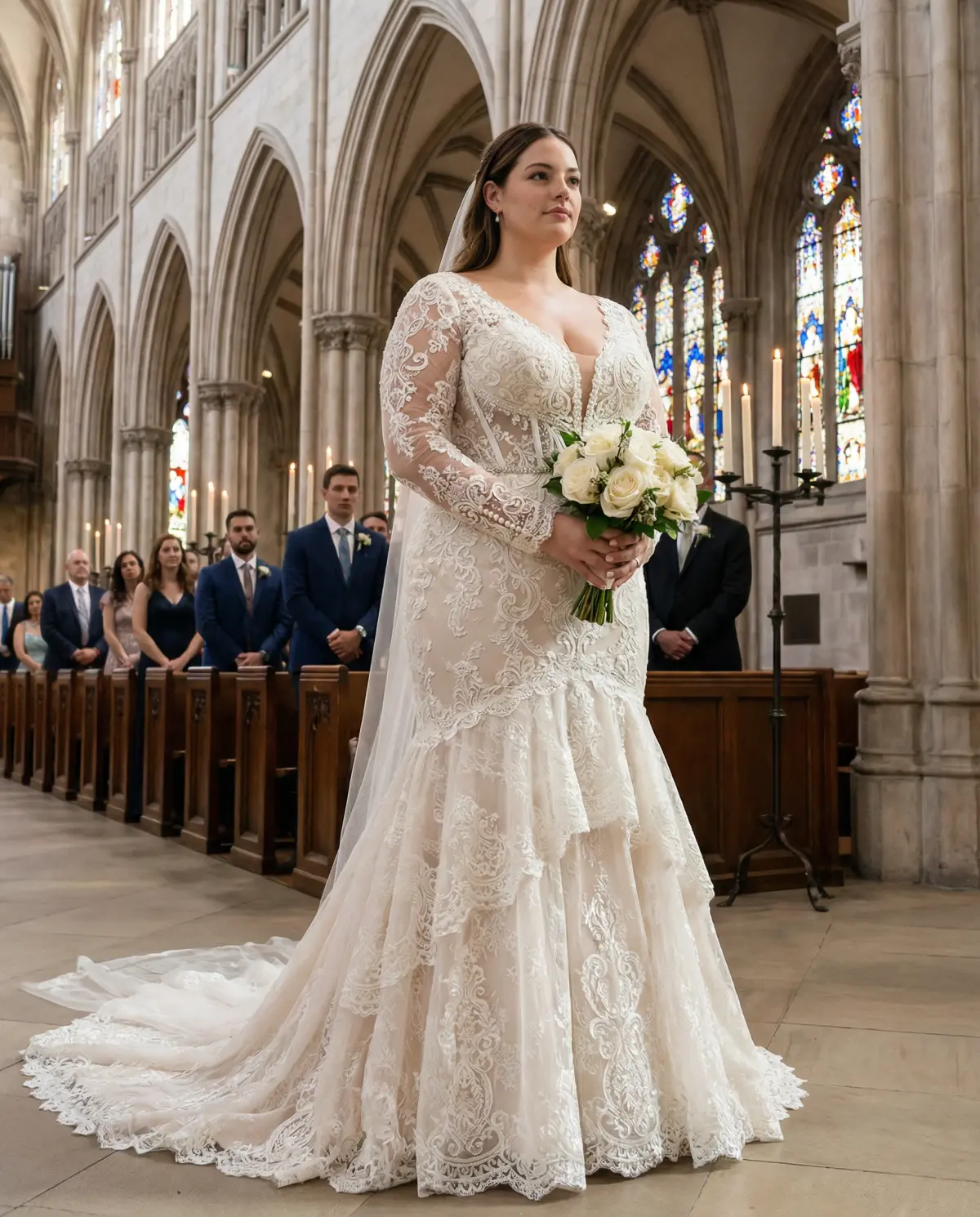 This is where plus size bridal dresses either succeed or fail, and it has nothing to do with how the dress looks on the hanger: