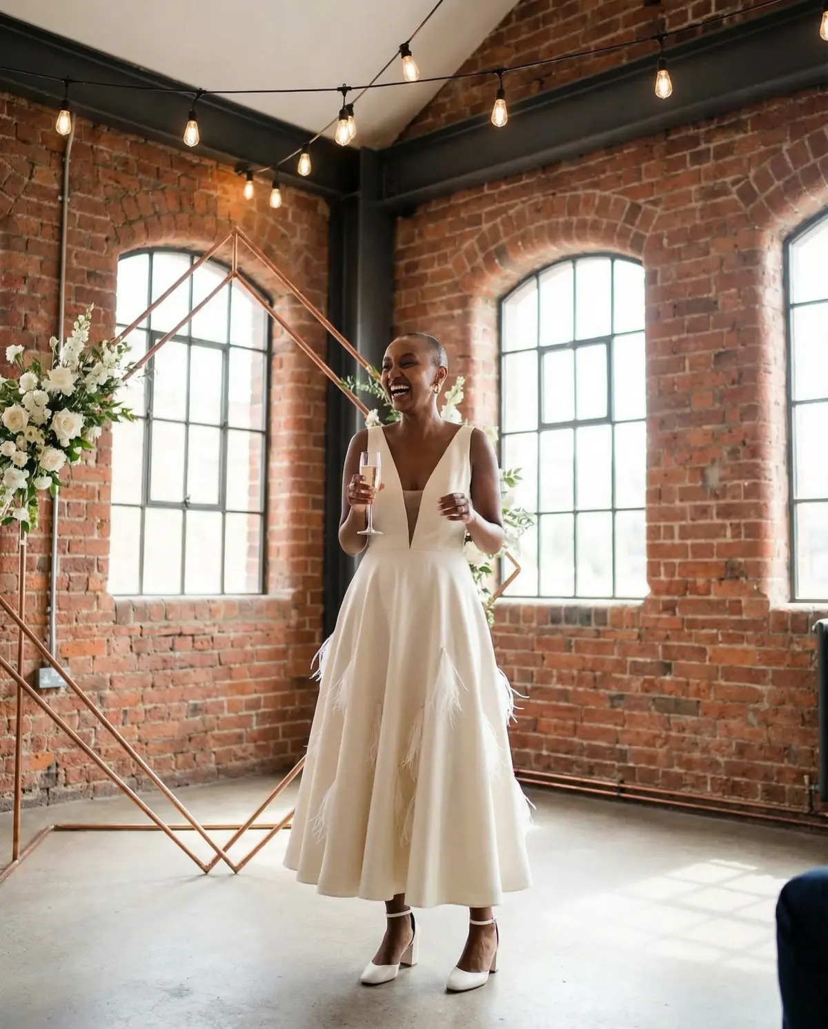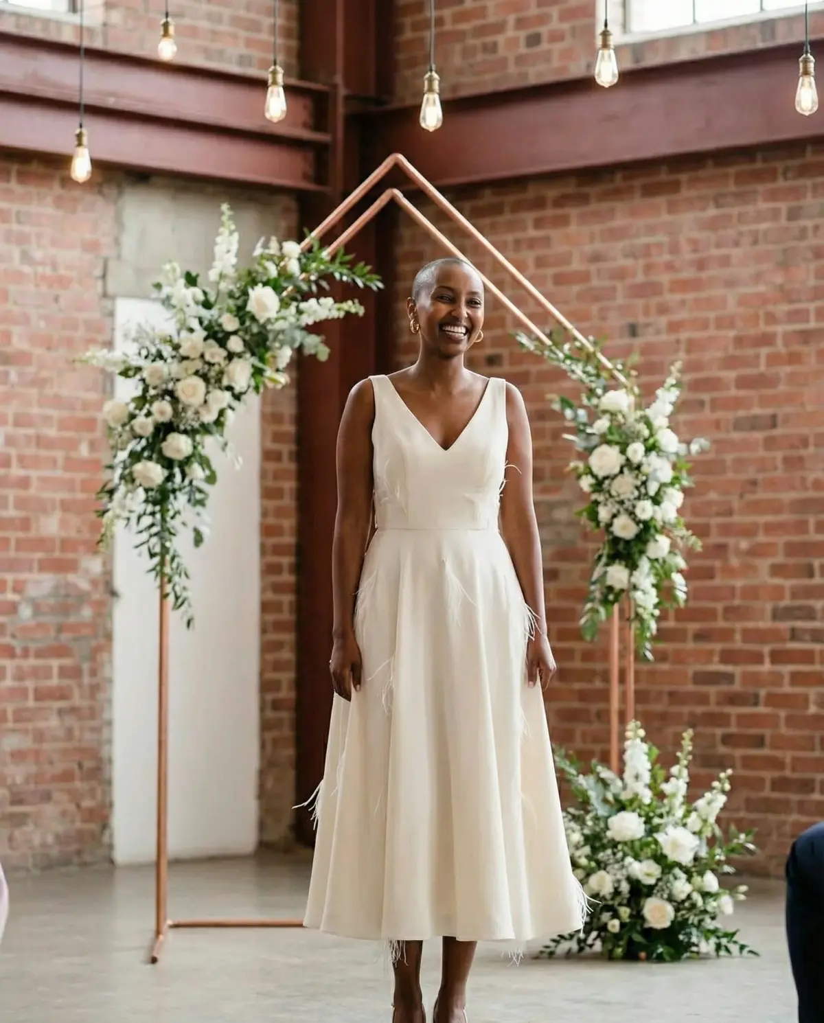 - White jumpsuit: Chic and unexpected; great for modern venues.