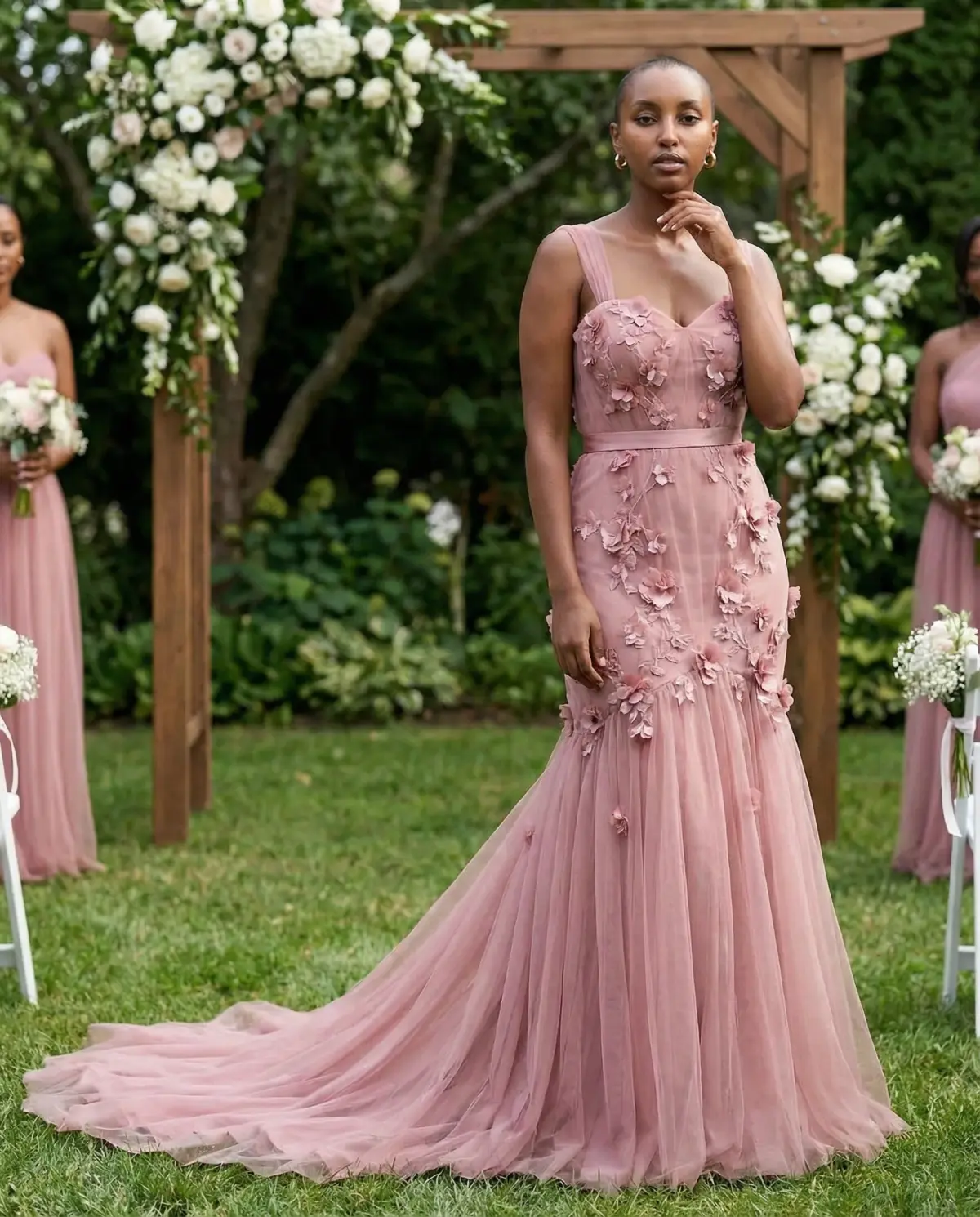 These elements create a romantic, understated look perfect for outdoor venues.