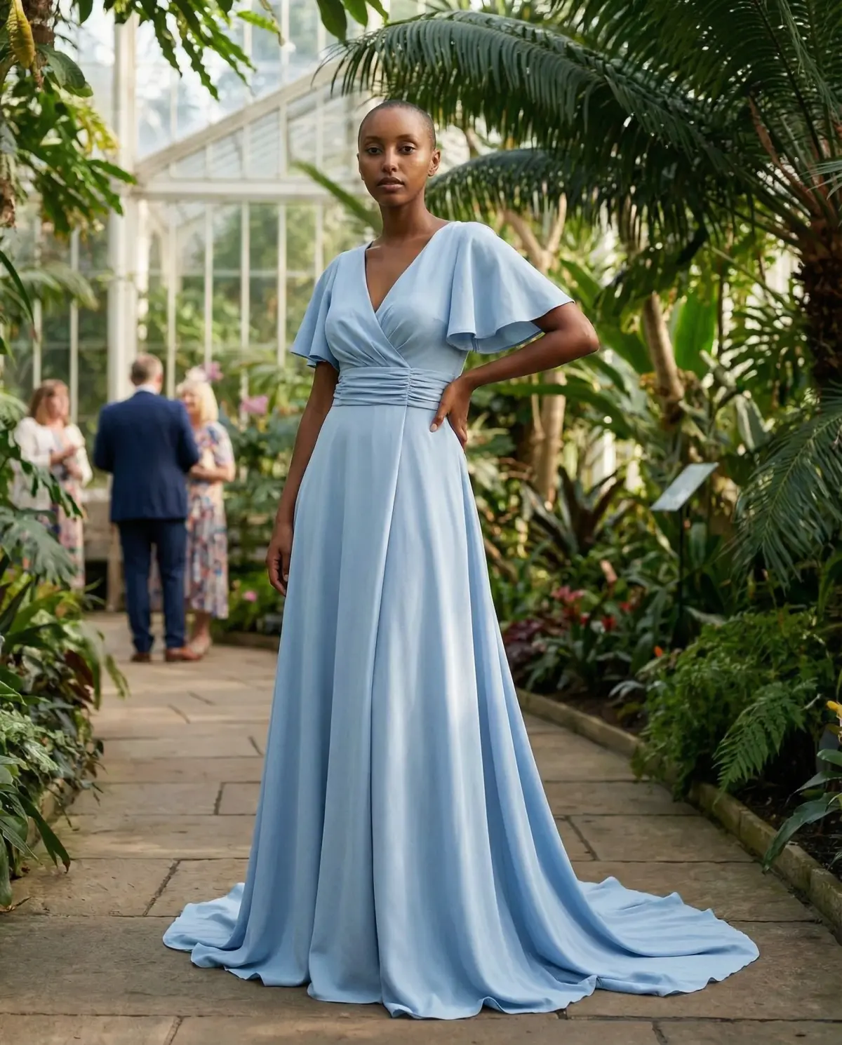 Indoor hotel or ballroom: The venue is climate-controlled, so you have more fabric freedom. A satin midi in a rich pastel, a crepe dress with clean lines, or a floral maxi in a more muted palette all work. This is where you can go slightly more formal.