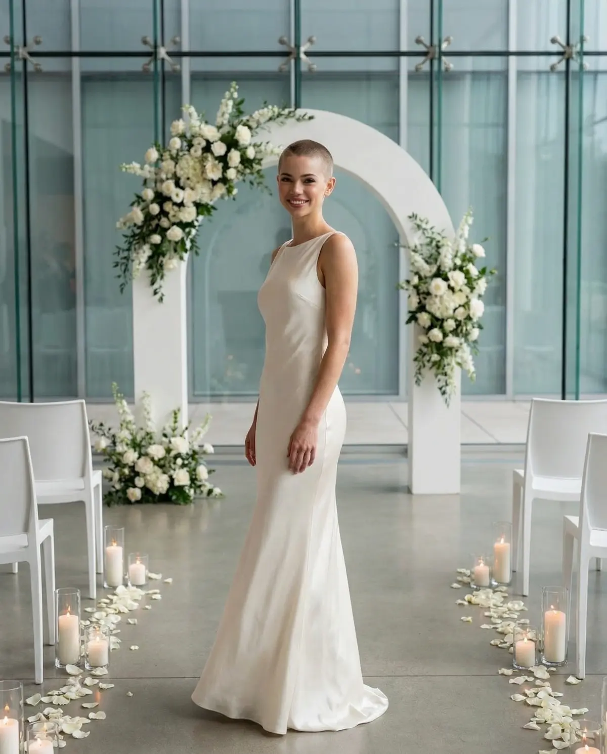 - 1990s: Minimal jewelry, sleek hair, strappy sandals, a simple bouquet of white flowers.